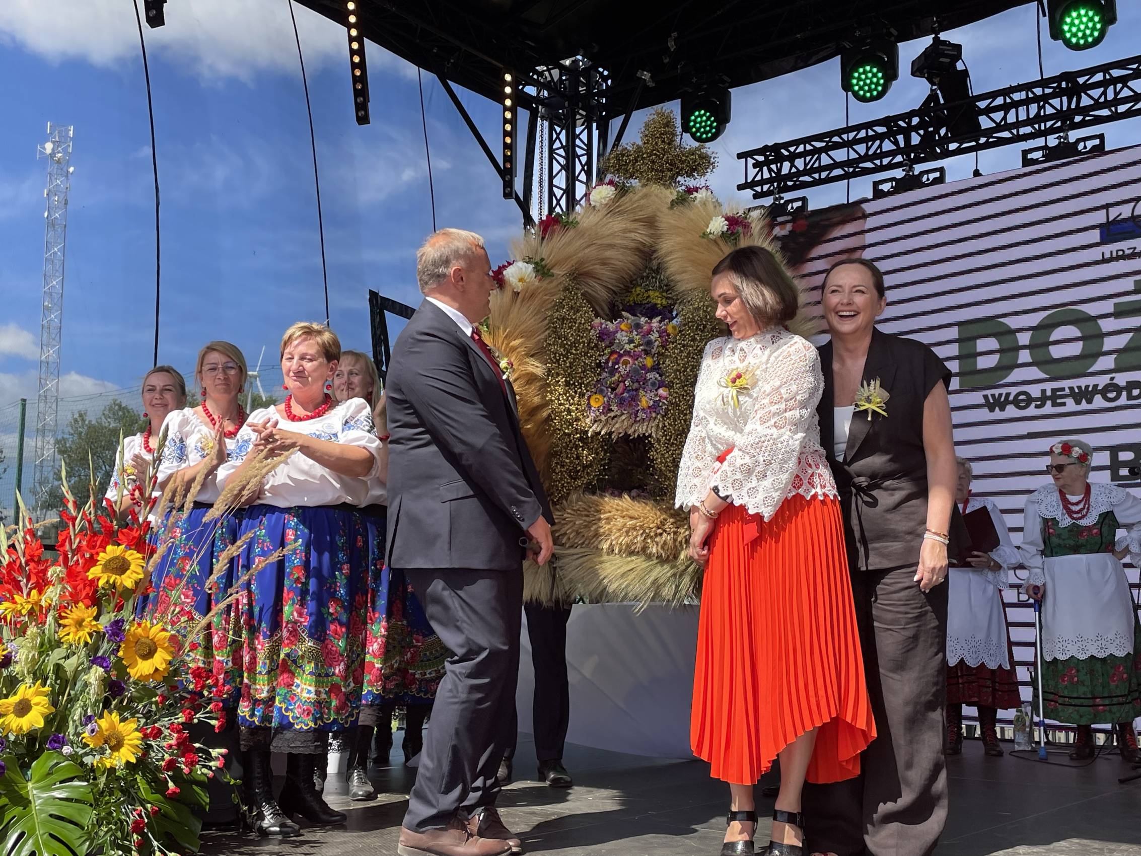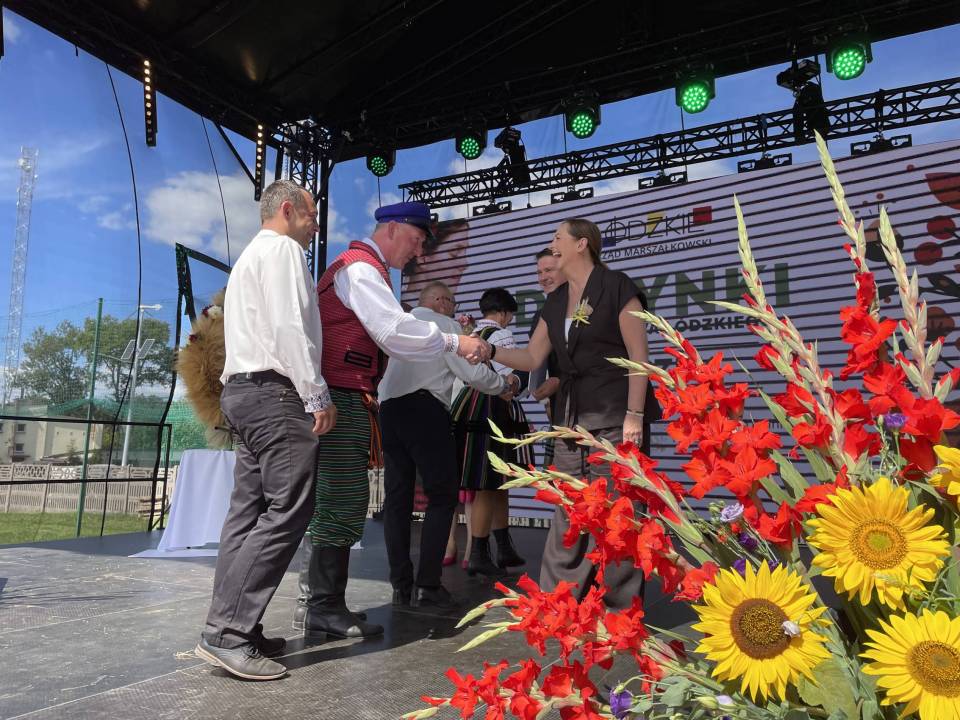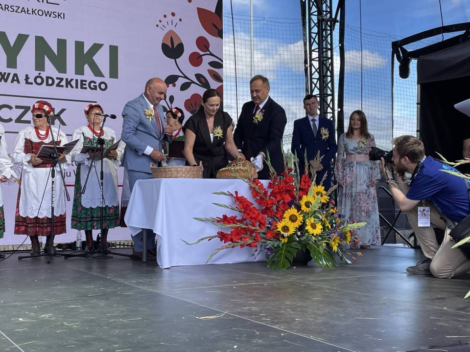 Zapewniła również o wsparciu dla obszarów wiejskich – w tym roku sołectwa z woj. łódzkiego otrzymały rekordowe 40 mln zł m.in. na świetlice i miejsca integracji. Część obrzędową rozpoczął Zespół Śpiewaczy „Sędziejowianki", a następnie starostowie dożynek – Agnieszka Węglewska i Paweł Michalak – przekazali na ręce marszałek bochen chleba upieczony z tegorocznych zbóż.
