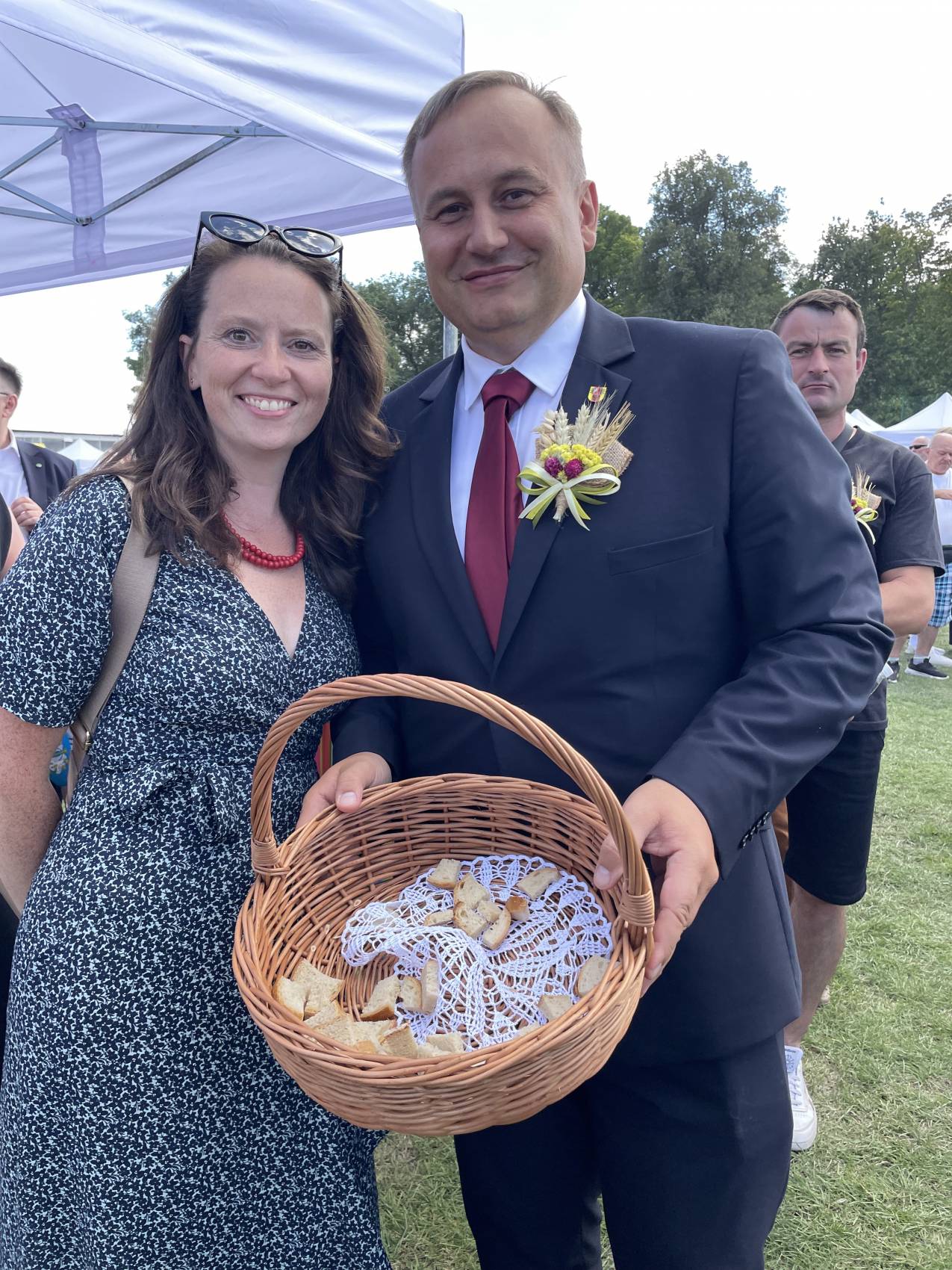 Obiecuję, że będę go dzieliła sprawiedliwie, aby w żadnym domu i na żadnym stole go nie zabrakło – mówiła Joanna Skrzydlewska, dzieląc chleb w towarzystwie członków zarządu i wójta Buczku Bronisława Węglewskiego.