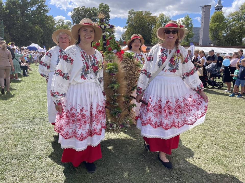 Misternie wyplatane złote kłosy, barwne kwiaty, aromatyczne zioła i obrazy z ziaren – wieńce dożynkowe podczas Święta Plonów w Buczku urzekały formą i symboliką. To właśnie one, obok chleba, są najważniejszym znakiem wdzięczności za zebrane plony.