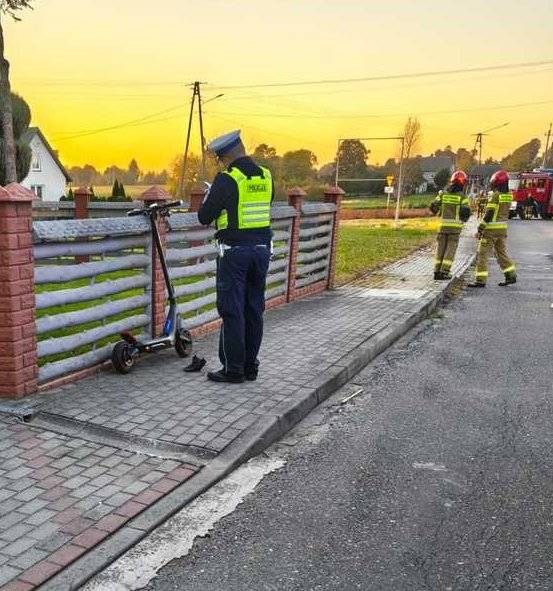 Zgłoszenie o wypadku drogowym w miejscowości Wójcin z udziałem hulajnogi elektrycznej wpłynęło na stanowisko kierowania oficera dyżurnego 2 października po godzinie 17:00. Do obsługi tego zdarzenia skierowano patrol ruchu drogowego, który po dotarciu na miejsce zastał poszkodowaną dziewczynę.