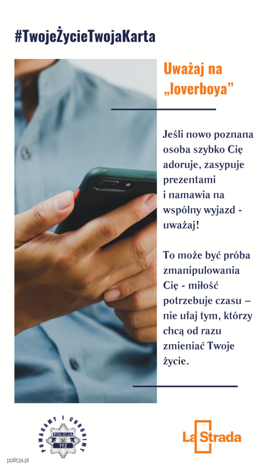 Obiecuje miłość i lepsze życie za granicą. W rzeczywistości odbiera wolność i godność. Kampania #TwojeŻycieTwojaKarta ostrzega: uważaj na loverboya – handlarza marzeń i emocji.