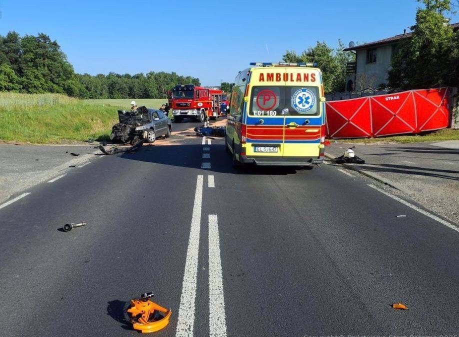 Tragiczny wypadek na drodze wojewódzkiej nr 484. Po godzinie 17:00 w miejscowości Szpinalów w gminie Kamieńsk doszło do dramatycznego zdarzenia drogowego, w którym zginął młody motocyklista, a dwie osoby zostały ciężko ranne. Sprawcą był 30-letni kierowca Volkswagena – jak się okazało, kompletnie pijany.
