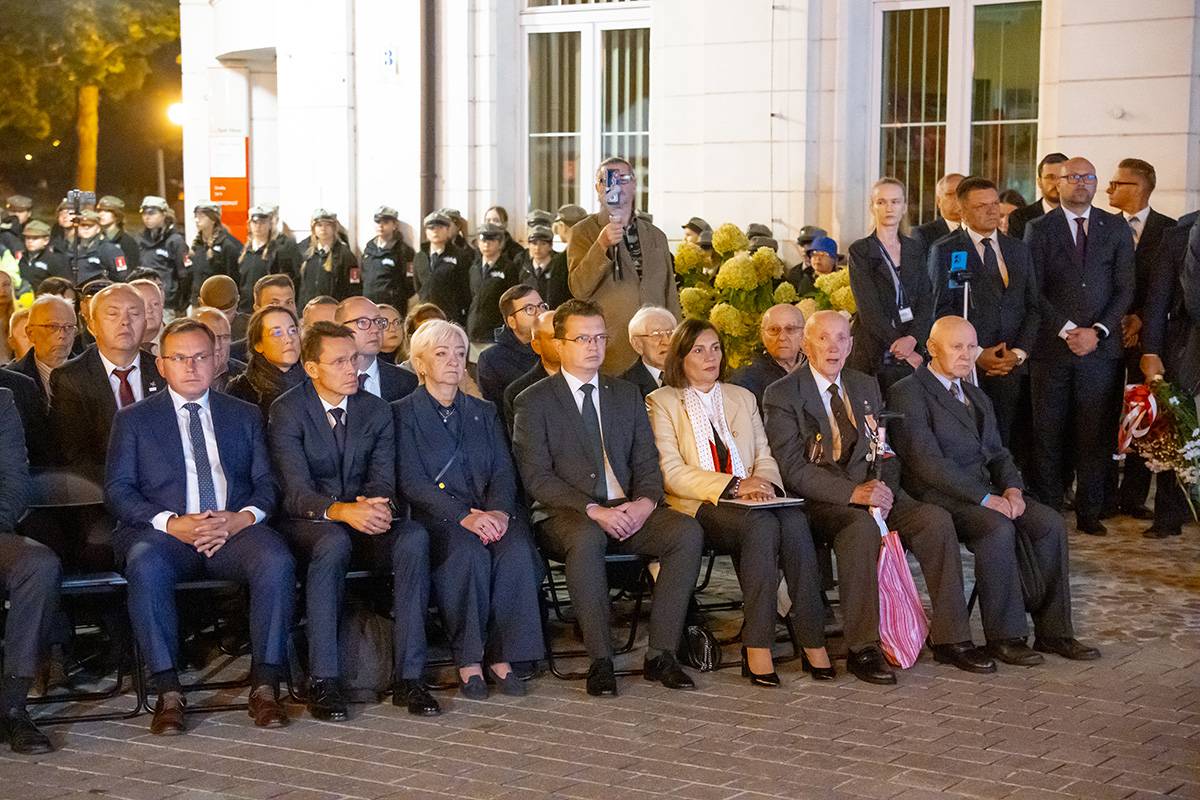 Tradycyjnie rocznica w Wieluniu gromadzi przedstawicieli władz państwowych, samorządowych, organizacji społecznych, harcerzy i mieszkańców. Obecny był m.in. wicepremier i minister cyfryzacji Krzysztof Gawkowski, który w swoim przemówieniu przypomniał o tragizmie wydarzeń z 1939 roku.
