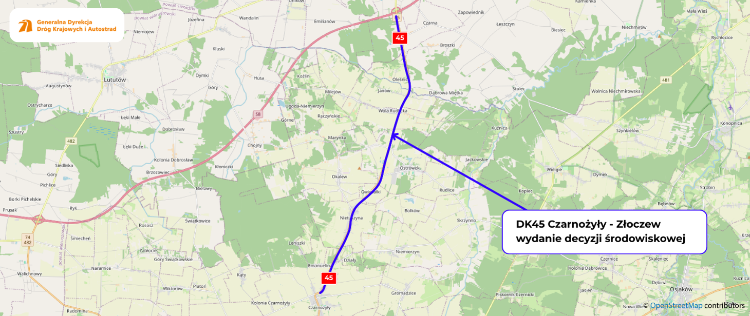 - Zgodnie z wydaną decyzją środowiskową, rozbudowa drogi krajowej nr 45 obejmuje poszerzenie trasy, podniesienie jej nośności do standardów dróg krajowych oraz przebudowę licznych skrzyżowań- przekazują pracownicy łódzkiego oddziału GDDKiA.
